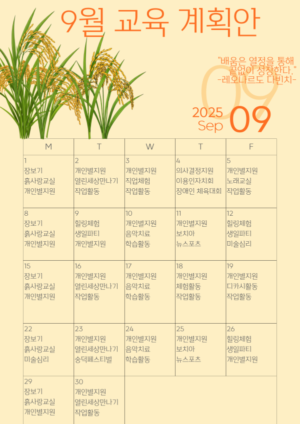 다모아주간보호센터 9월 교육 계획안 페이지 정보 작성일 : 25-09-04 15:29 조회 : 108회 관련링크 본문 다모아주간보호센터 9월 교육 계획안입니다!! 이전글 다음글 목록
