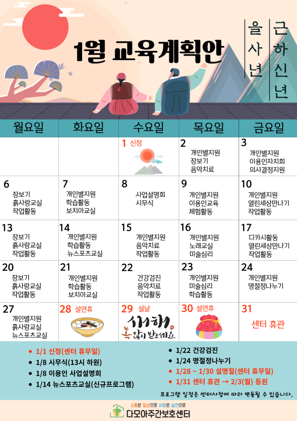 다모아주간보호센터 2025년 1월 교육계획안
