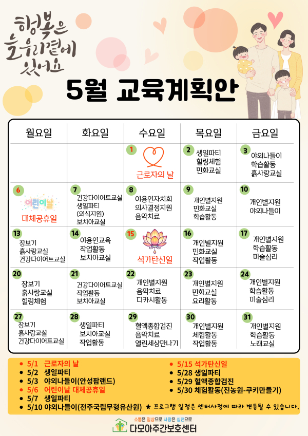 다모아주간보호센터 2024년 5월 교육계획안
