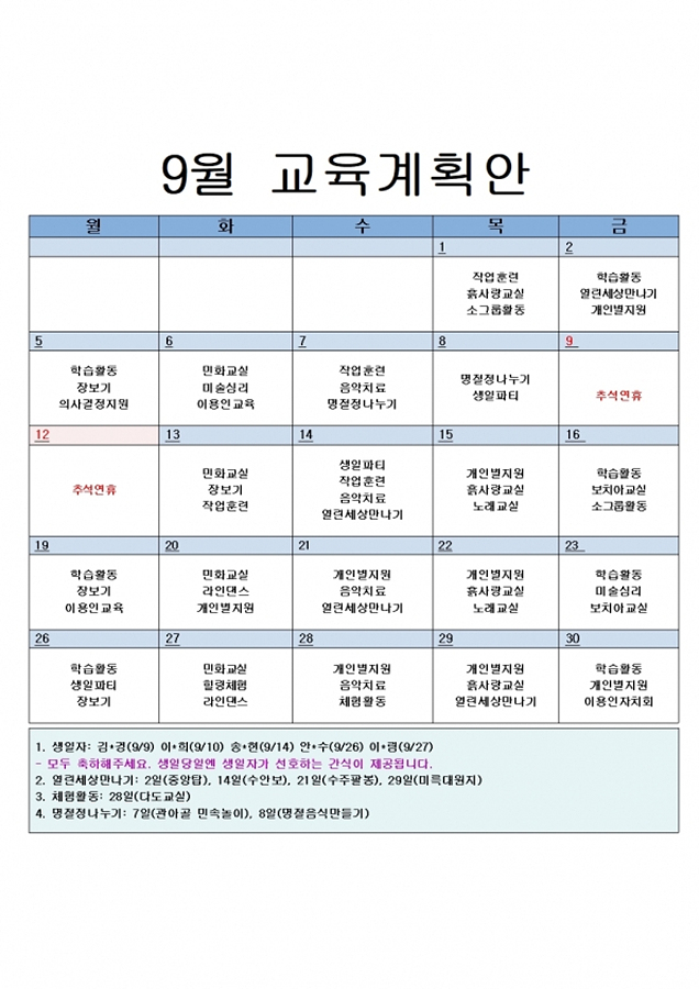 2022년 9월 교육계획안 입니다.