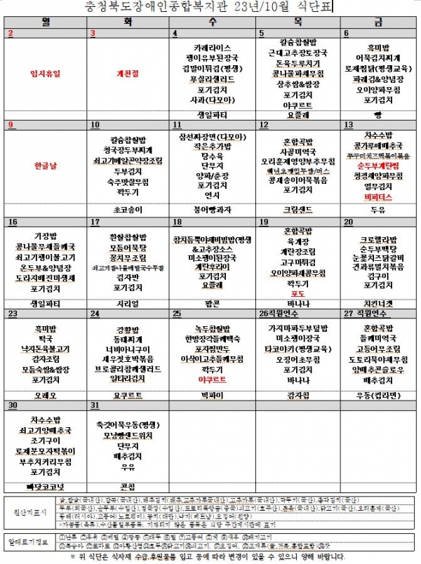 2023년 10월 식단표 및 간식표입니다. 페이지 정보 작성일 : 23-10-06 17:15 조회 : 363회 관련링크 본문 2023년 10월 식단표 및 간식표 입니다. 이전글 다음글 목록