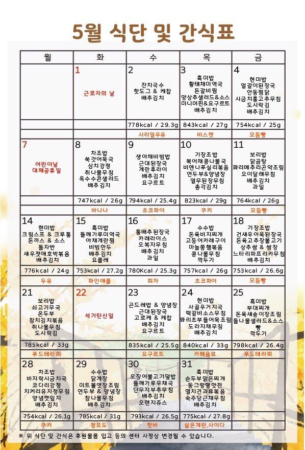 2018년 5월 식단 및 간식표 입니다, 페이지 정보 작성일 : 18-04-26 08:44 조회 : 856회 관련링크 http://│ː││ː│ 1223회 연결 본문 이전글 다음글 목록