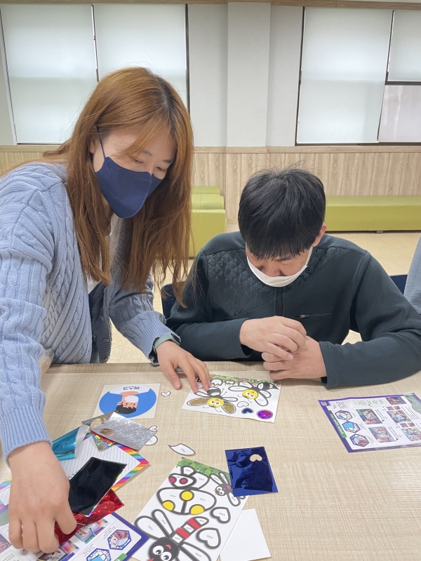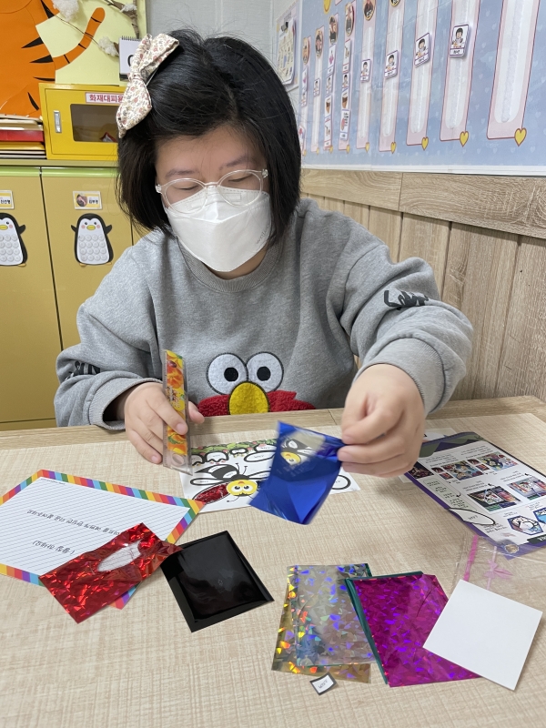 그림의 스티커를 제거 한 뒤 포일을 붙여 손으로 문질러 색을 입히는 "반짝반짝 포일아트만들기"를 진행해보았습니다.