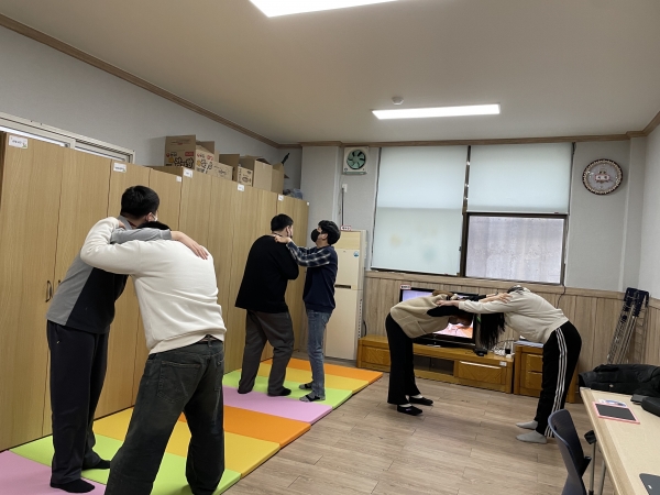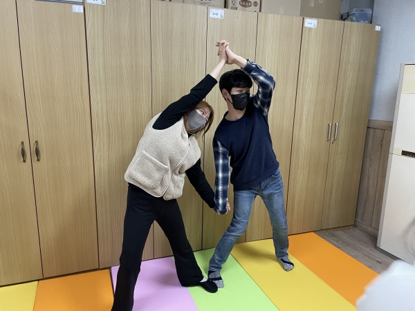 커플요가 영상을 시청하며 라인댄스를 진행했습니다~