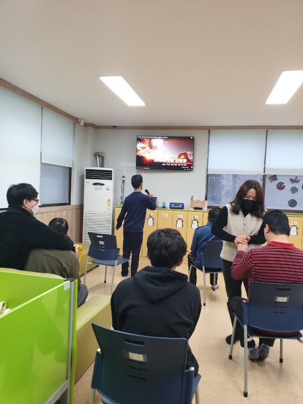 2월 노래교실 프로그램을 진행하여 다 함께 노래를 부르고 춤을 추면서 코로나 스트레스를 날려보냈습니다.