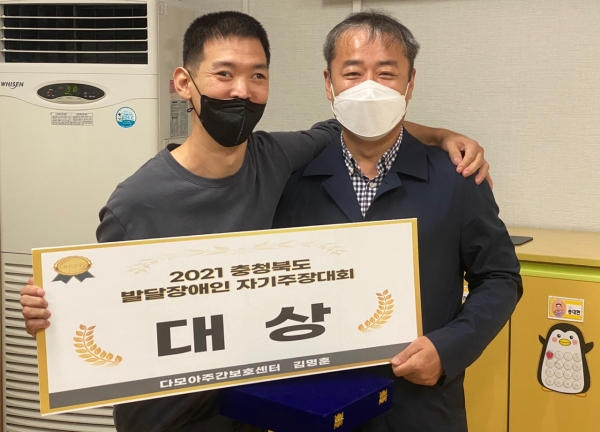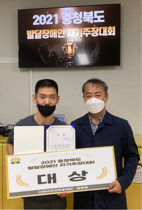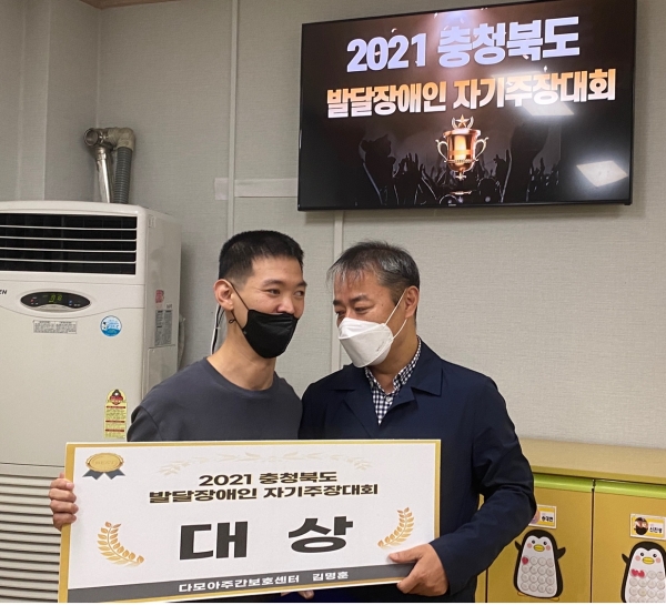 2021 충청북도 발달장애인 자기주장대회에서 우리 센터의 김명훈이용인께서 영예의 "대상"을 수상하셨습니다.