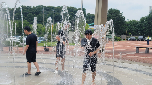 체육관 앞에 마련된 물놀이 분수대로 놀러가서 시~원하게 물놀이 하고 왔습니다! 완전 시원했어요!^^