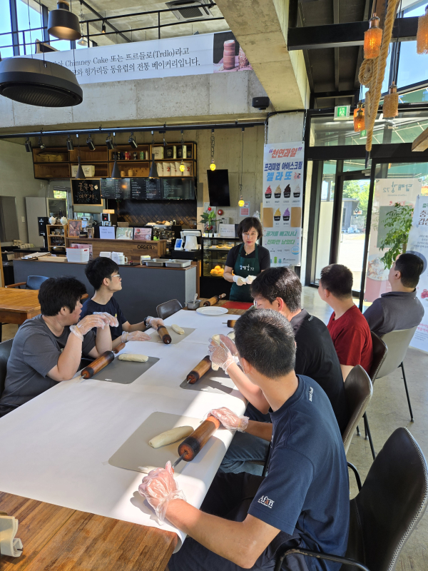 제빵소로 가서 맛있는 굴뚝빵을 만들어 보았어요! 달콤한 초콜릿에 향긋한 시나몬 향이 일품인걸요?^^