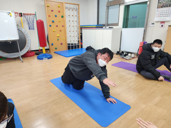 외부 전문 강사님이 지도하시는 필라테스를 열심히 따라해보았어요!^^